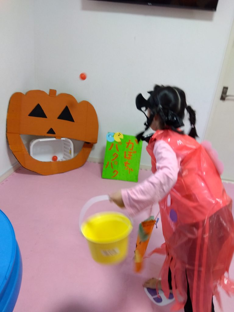 皆、かぼちゃの口の中に上手にボールを入れる事が出来たね🌟
