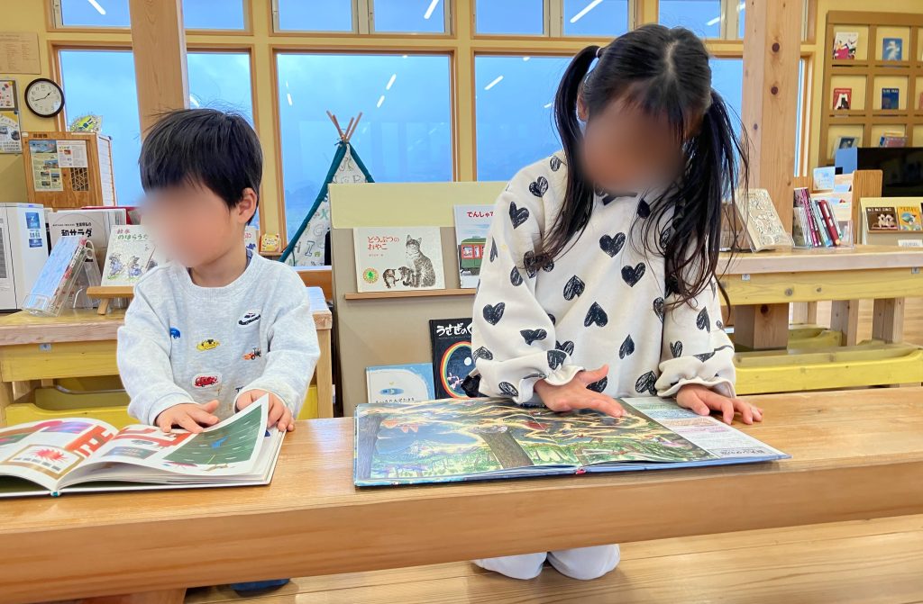 たまご絵本館では、好きな絵本を選びゆったりとした空間で絵本を楽しみました😊