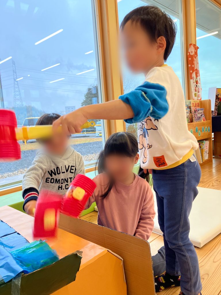 手作りのワニワニパニックのおもちゃがあり、みんなで楽しく遊んでいました🐊